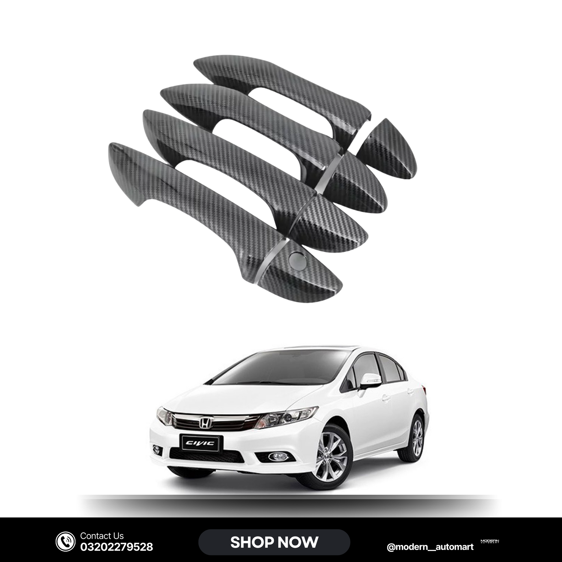 Enhance the sporty look of your Honda Civic Rebirth with these premium Carbon Fiber Door Handle Covers. Designed to perfectly fit Civic Rebirth models, these covers provide both protection and style. Crafted from high-quality ABS plastic with a realistic carbon fiber finish, they are lightweight, durable, and resistant to scratches, fading, and weather exposure.