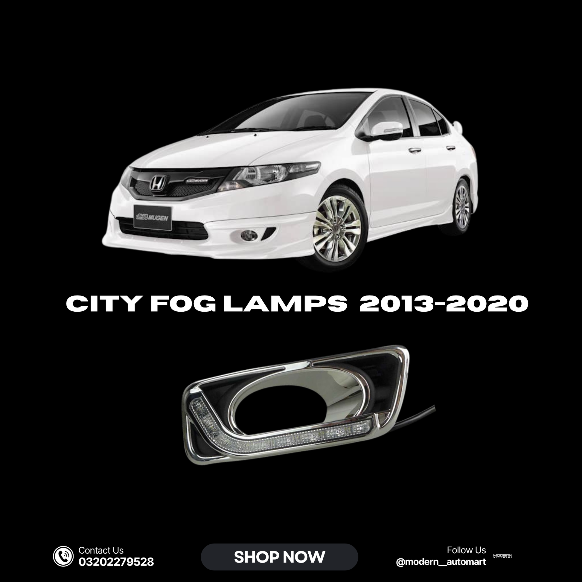 Give your Honda City a refined and modern appearance with these LED Fog Lamp Covers, designed to fit model years 2013 through 2020. Featuring built-in LED daytime running lights, these covers enhance front-end styling while improving visibility and road safety.
