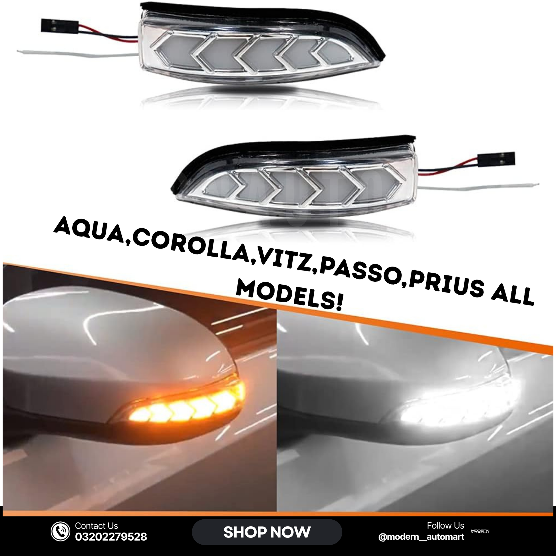 Sequential White-Amber LED Side Mirror Indicator Lights – Toyota Aqua, Passo, Vitz, Corolla (All Models)