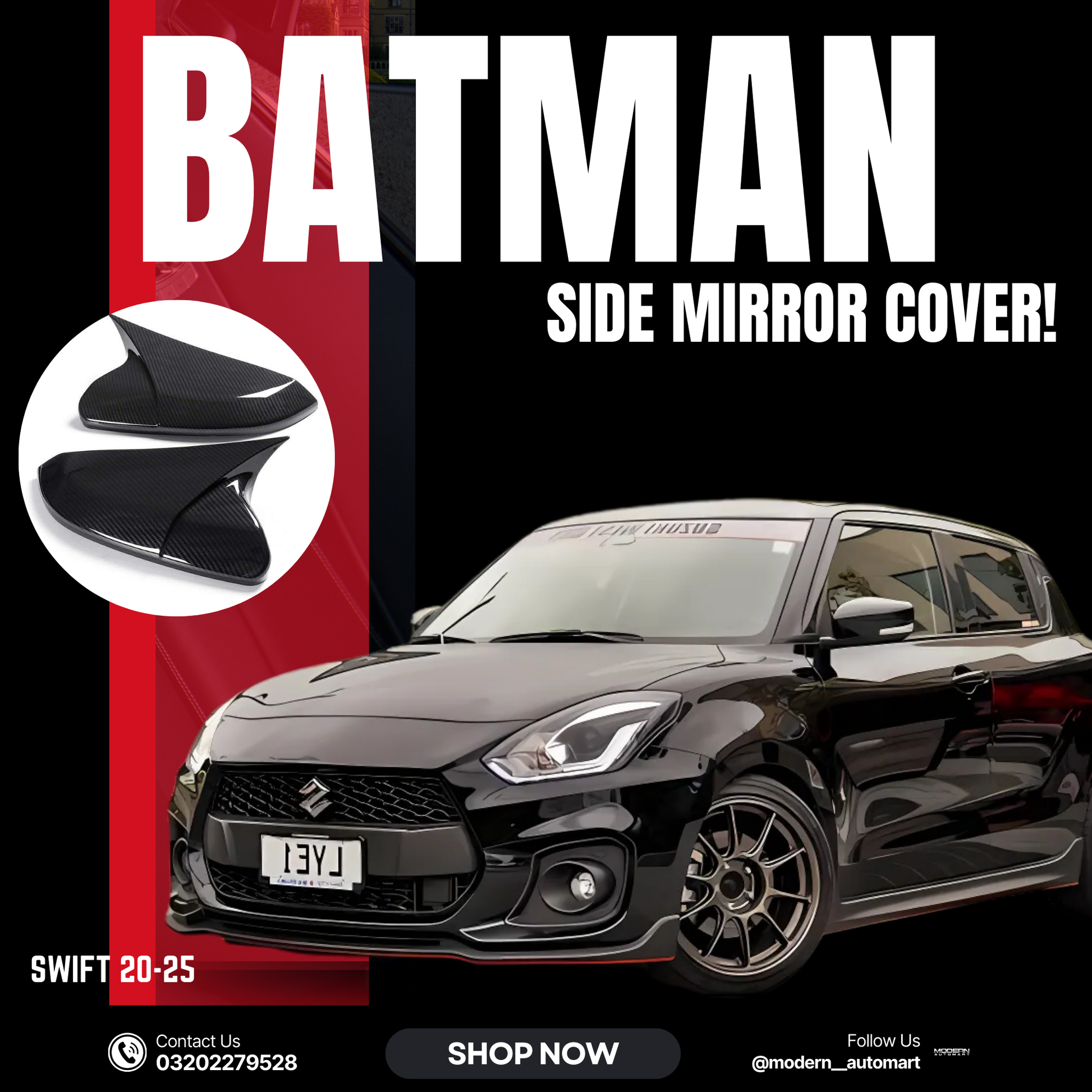 Upgrade your Suzuki Swift with this sleek Batman-style carbon fiber side mirror cover. Designed for 2022-2025 models, it combines aggressive styling with premium materials for a sporty, head-turning finish.