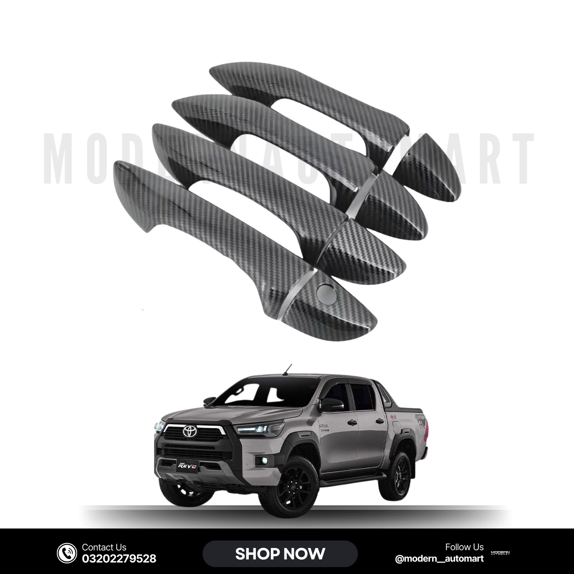 Manufactured from durable ABS plastic with a realistic carbon fiber finish, they are lightweight, weather-resistant, and long-lasting. The sporty carbon fiber design adds a tough and modern look to your Hilux, making it stand out both on and off the road. Installation is quick and secure with pre-applied automotive-grade adhesive tape—no drilling or modifications required.