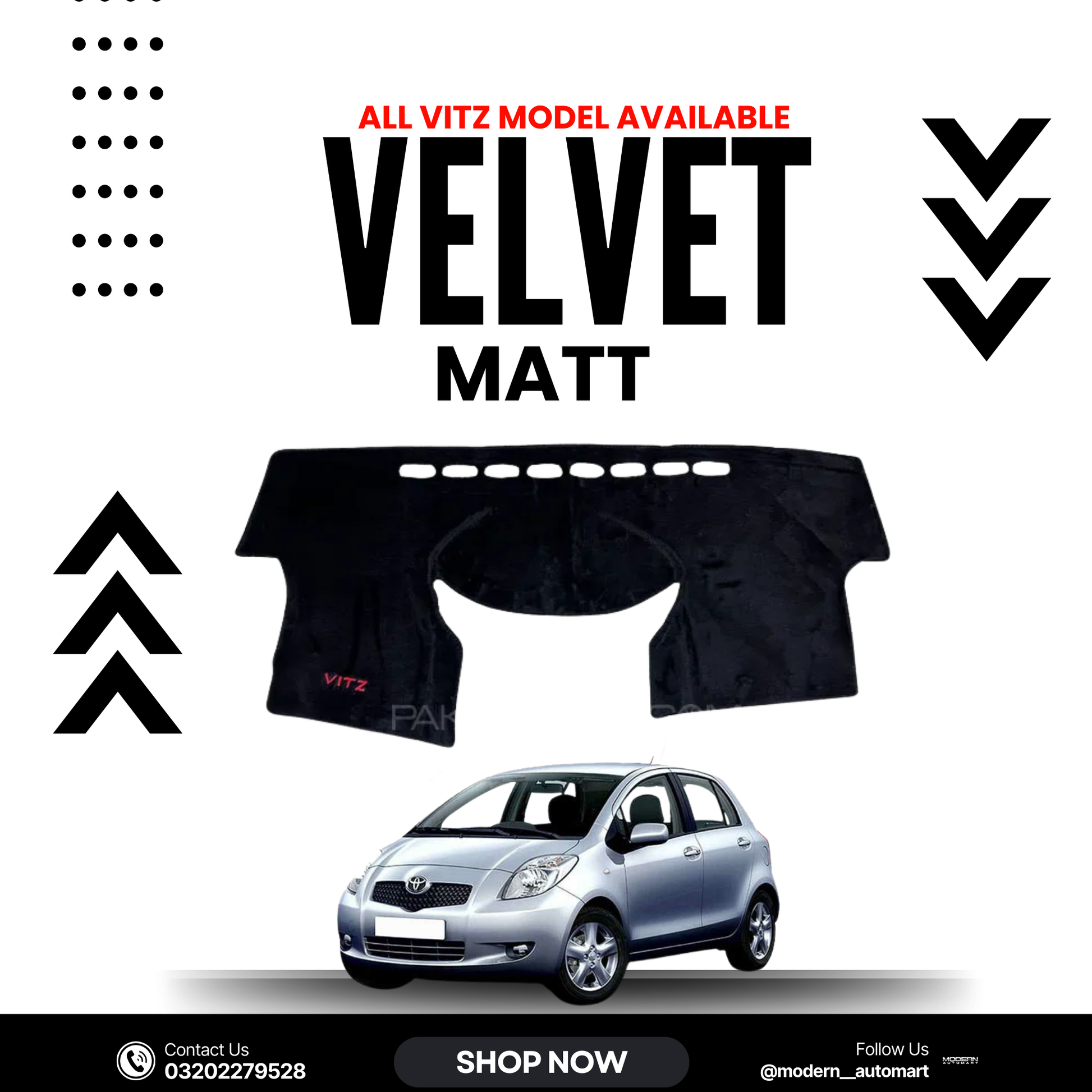 Upgrade and protect your Toyota Vitz 2007–2012 with this premium Velvet Dashboard Mat. Custom-designed for a precise fit, it protects your dashboard from UV rays, scratches, dust, and heat damage while adding a sleek and elegant look to your car’s interior.
